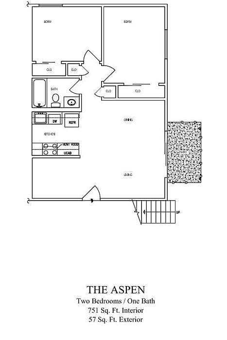 The Aspen - Floorplan 1 Apartment Unit: 18Apartment Model: The Aspen$2,1752 Bedroom, 1 Bath, 751 sq ftAvailable NowThe Birch