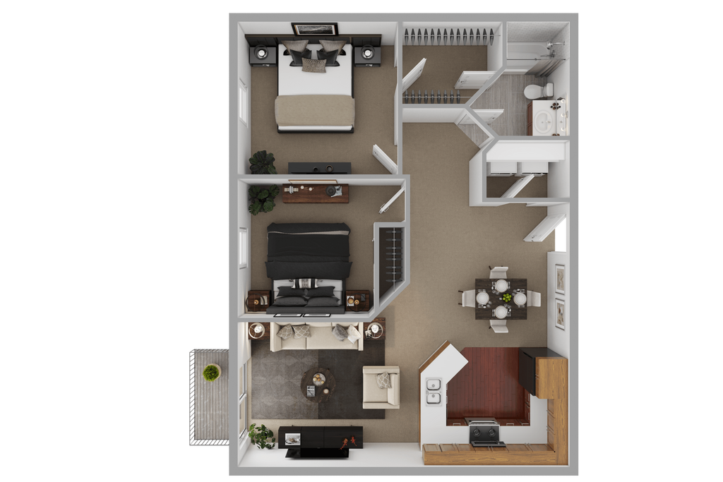 2 Beds, 1 Bath, 850 sq ftAvailable NowModel Gallery