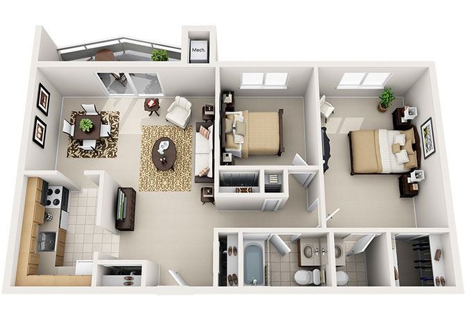 2 Beds, 1 Bath, 1000-1075 sq ftAvailable NowModel Gallery