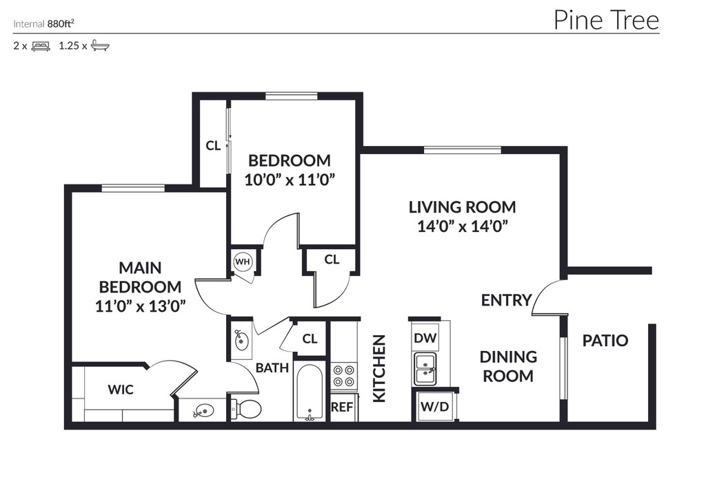 2 Beds, 1 Bath, 880 sq ftAvailable Jan 7, 2026Model Gallery