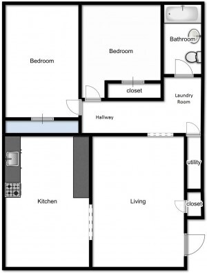 2 Beds, 1 Bath, 1000 sq ftAvailable NowLargest 2 BedroomThis is the largest 2 Bedroom at this PropertyModel Gallery