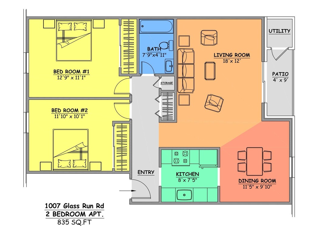 Apartment Model: 2 Bedroom$1,0792 Bedroom, 1 Bath, 835 sq ftAvailable Now![]()