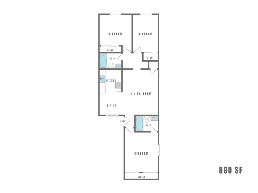 3 Beds, 2 Baths, 890-1000 sq ftTotal Monthly PriceAvailable NowTotal Monthly Price