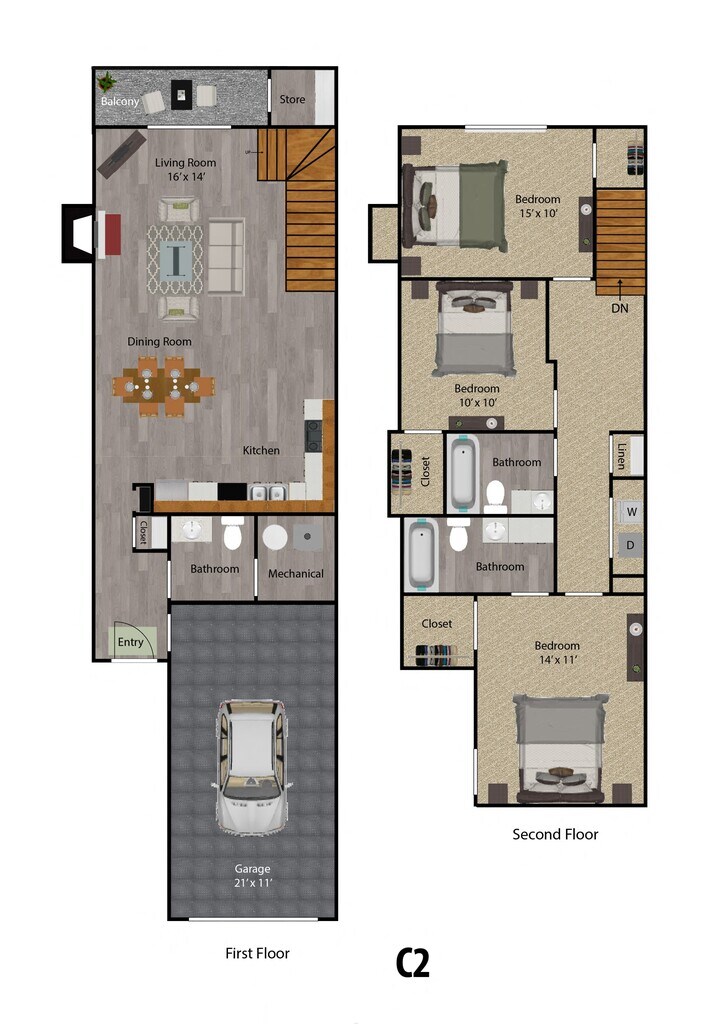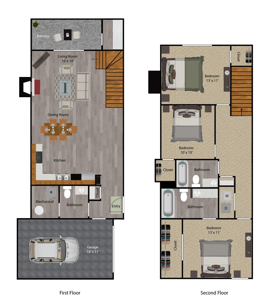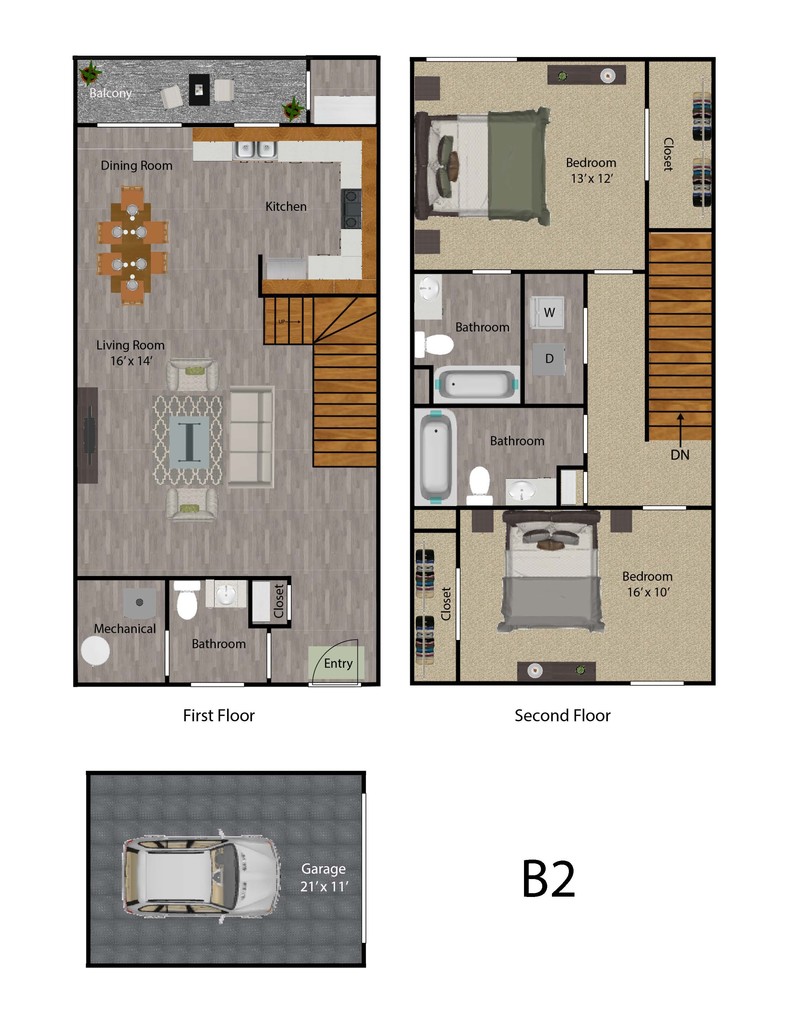 2 Beds, 2.5 Baths, 1275 sq ftAvailable NowModel Gallery