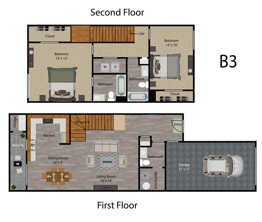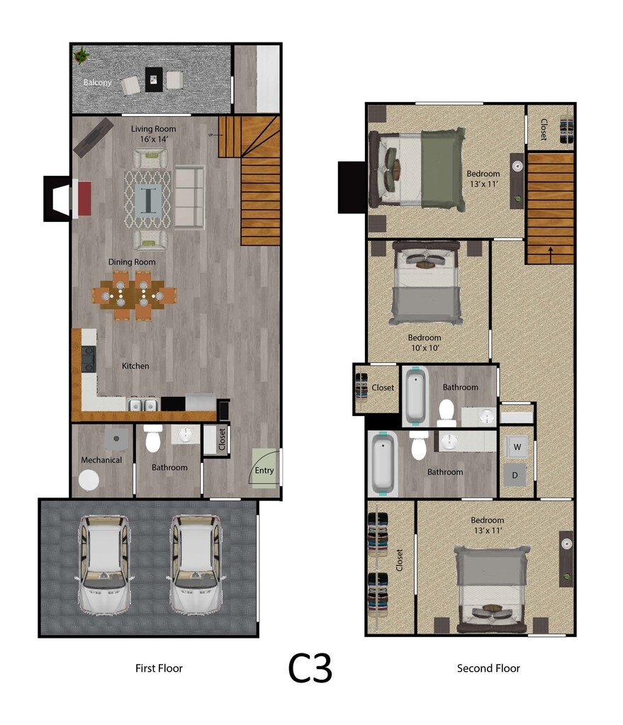 B3 - Floorplan 3 Apartment Unit: 12834Apartment Model: B3$2,0522 Bedroom, 2.5 Bath, 1275 sq ftAvailable NowApartment Unit: 15314Apartment Model: B3$2,0522 Bedroom, 2.5 Bath, 1275 sq ftAvailable November 22, 2025Floorplan B3R