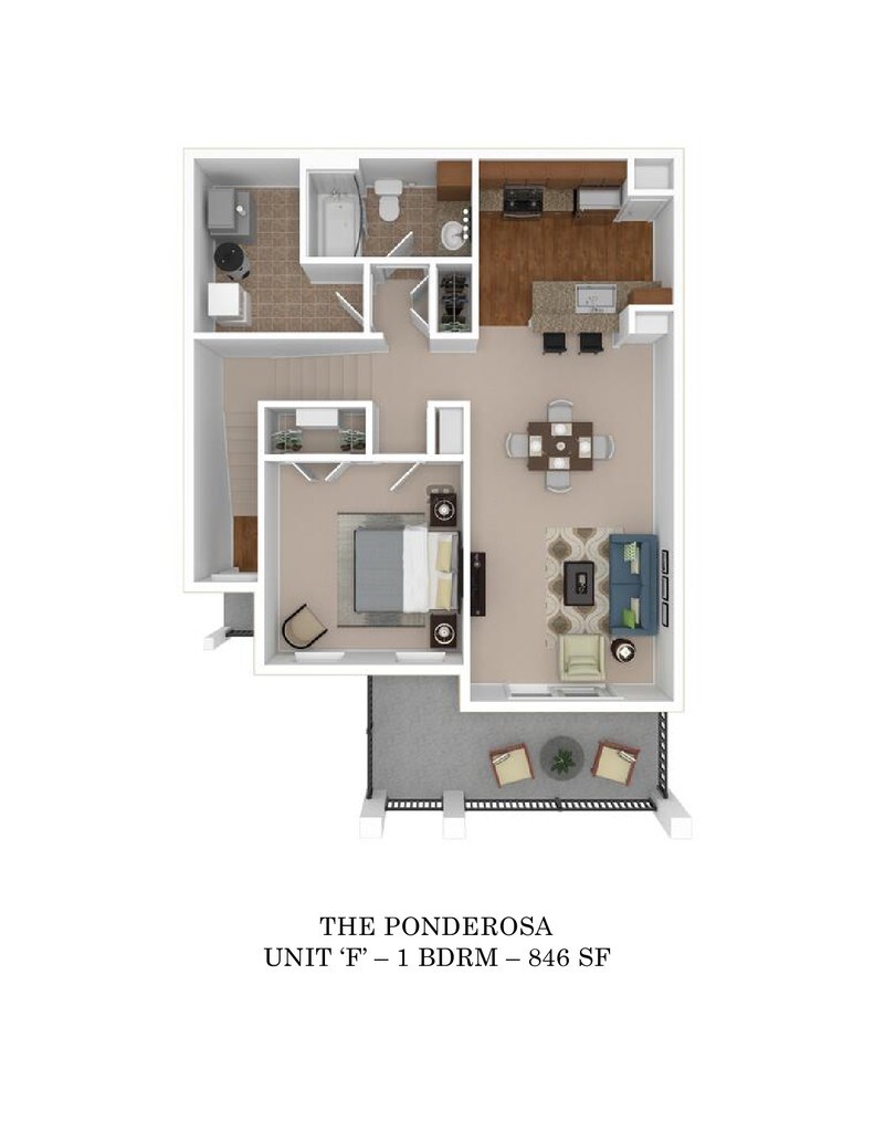 Apartment Model: The Ponderosa$1,5501 Bedroom, 1 Bath, 846 sq ftAvailable NowThe Ponderosa - Floorplan 1 The Ponderosa - Floorplan 2 The Ponderosa - Floorplan 3 2 Bedrooms