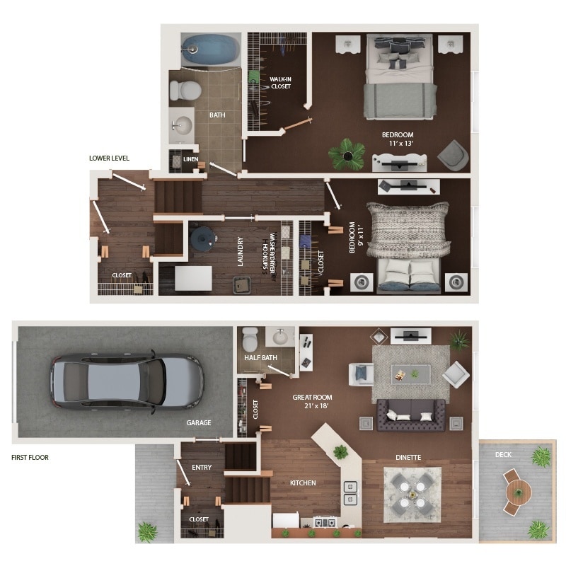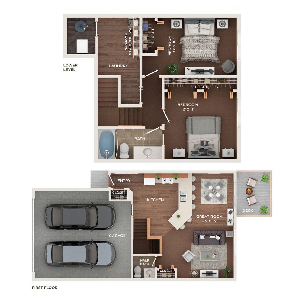 2 Beds, 1.5 Baths, 1110 sq ftModel Gallery