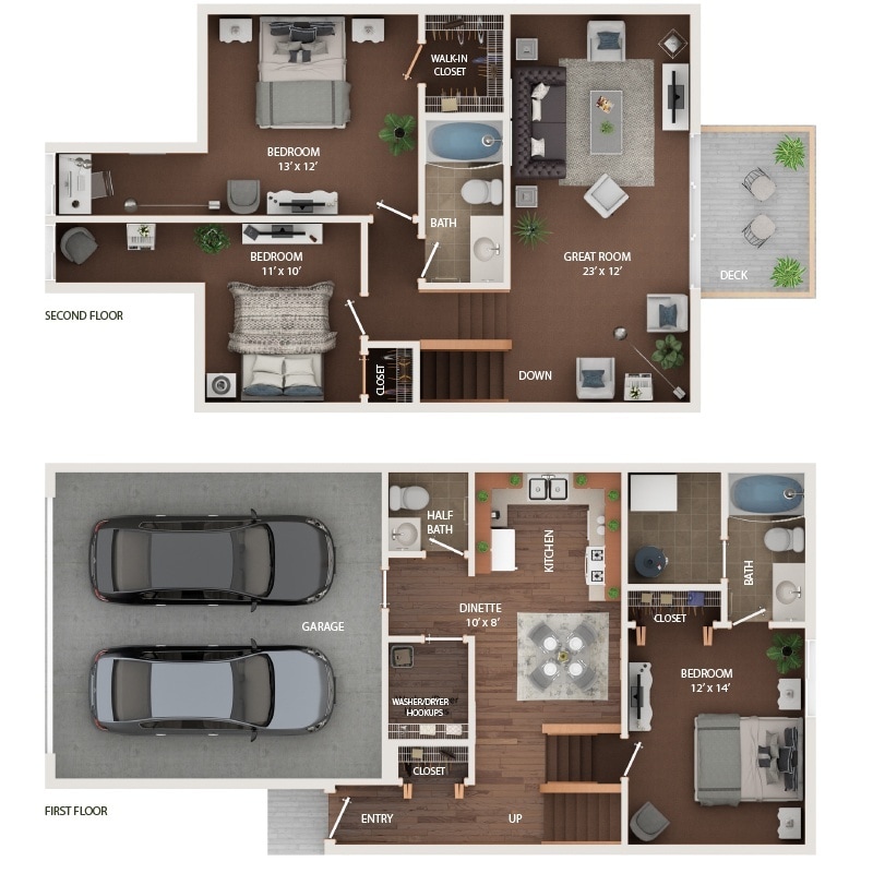 2 Beds, 1.5 Baths, 1038 sq ftModel Gallery