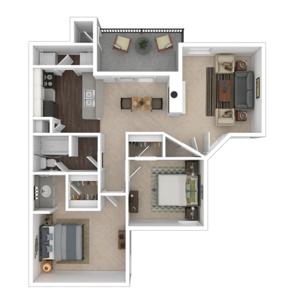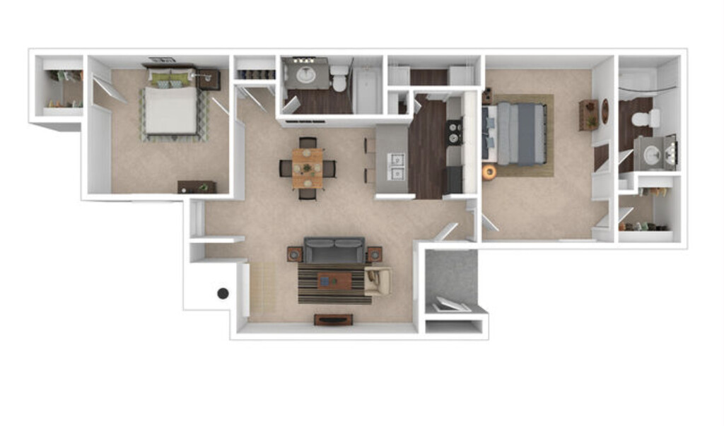 2 Beds, 2 Baths, 972 sq ftAvailable NowLargest 2 BedroomThis is the largest 2 Bedroom at this PropertyModel Gallery