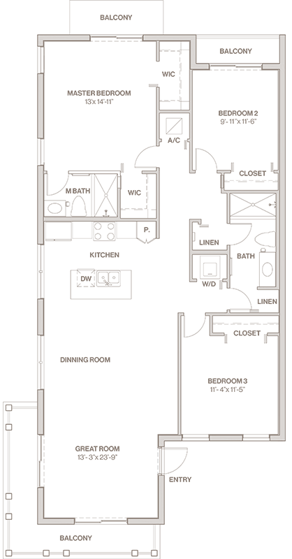 1 Bed, 1 Bath, 713 sq ftAvailable NowModel Gallery