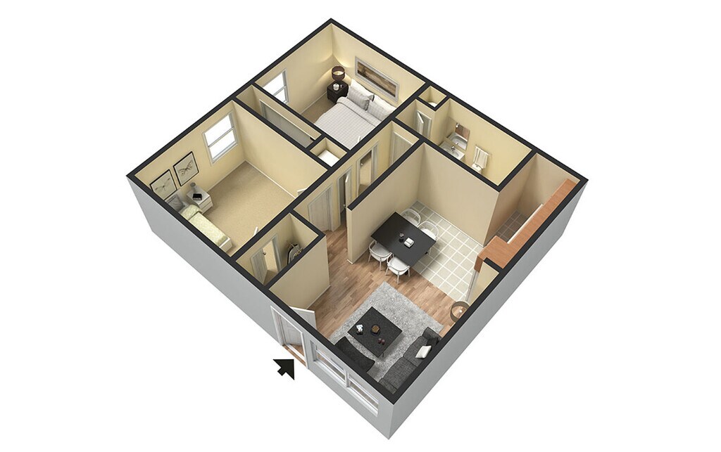 2 Beds, 1 Bath, 653 sq ftModel Gallery
