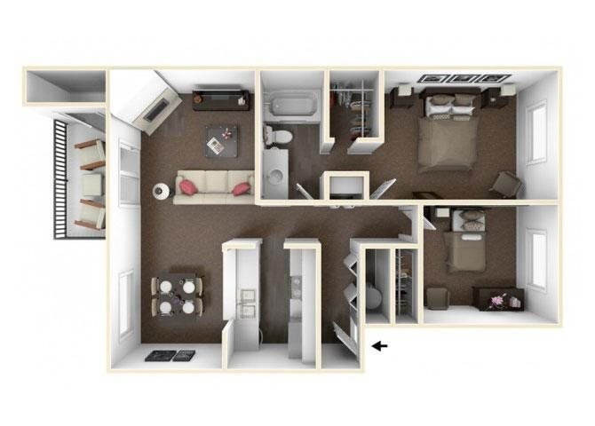 2 Beds, 1 Bath, 880 sq ftAvailable NowModel Gallery