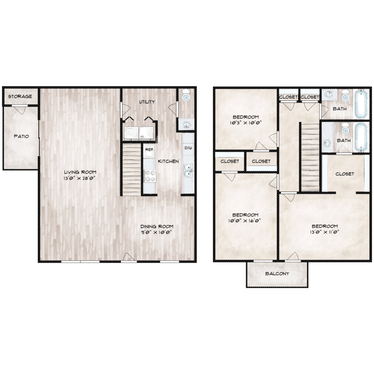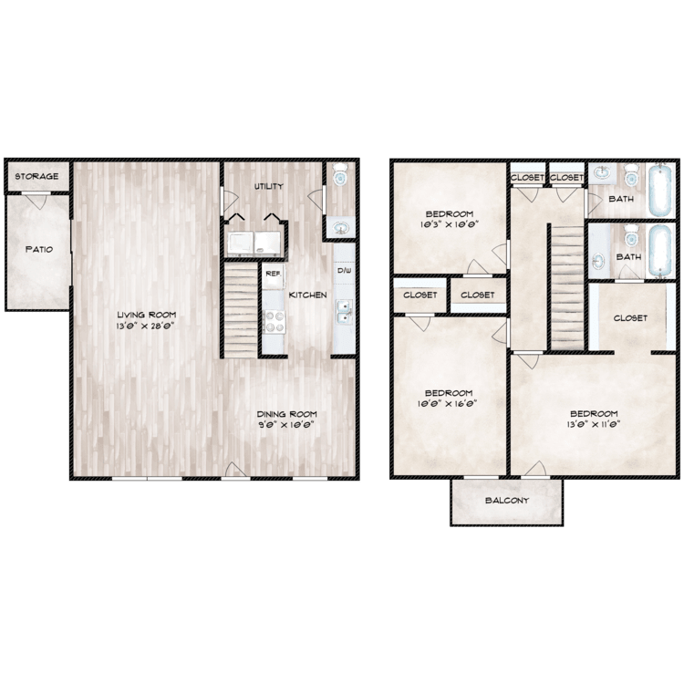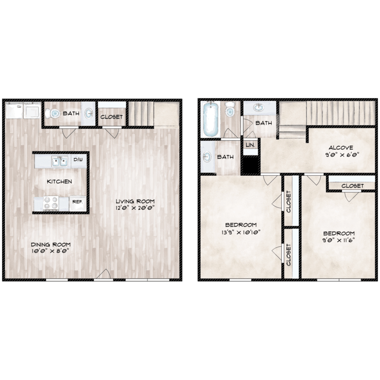 2 Beds, 2 Baths, 1103 sq ftAvailable NowModel Gallery