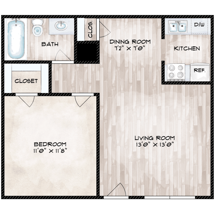 Apartment Model: B1-UG$9001 Bedroom, 1 Bath, 550 sq ftAvailable Now![]()