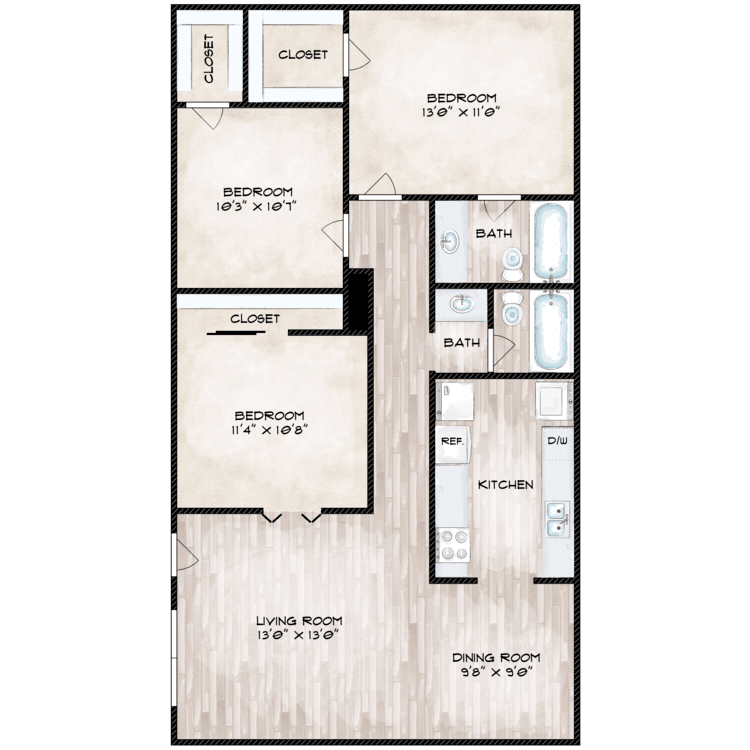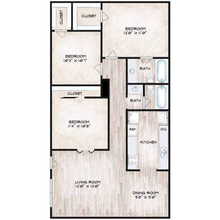 Apartment Model: B1L-UG$1,0551 Bedroom, 1 Bath, 783 sq ftAvailable Now![]()