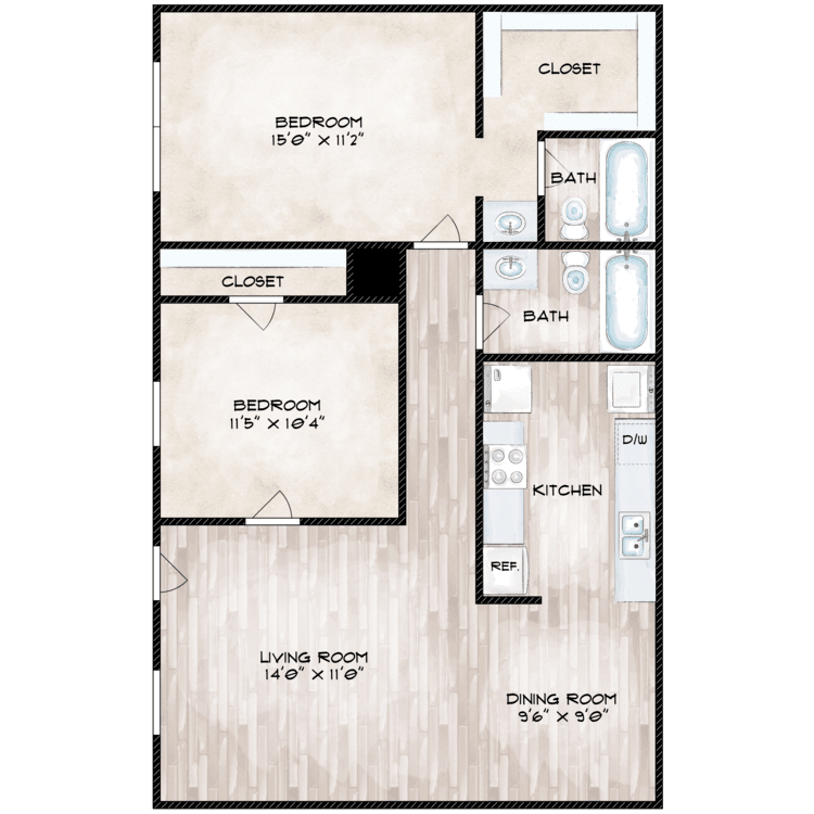 Apartment Model: B2$1,2002 Bedroom, 2 Bath, 1103 sq ftAvailable NowFloorplansPhotos![]()