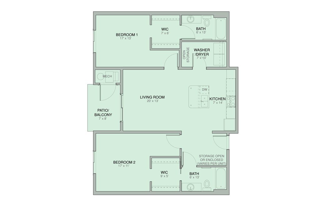 2 Beds, 2 Baths, 1180 sq ftAvailable NowLargest 2 BedroomThis is the largest 2 Bedroom at this PropertyModel Gallery