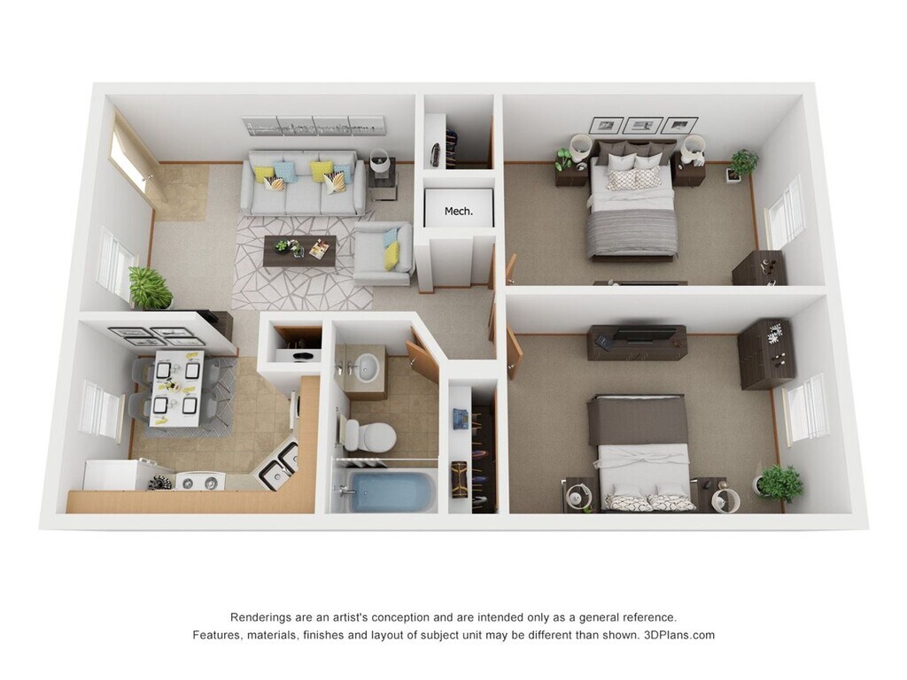 2 Beds, 1 Bath, 720 sq ftAvailable March 20, 2026Model Gallery