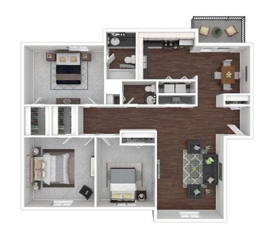 Apartment Model: 3 Bedroom 2 BathroomFrom $1,3503 Bedroom, 2 Bath, 1223 sq ftAvailable Now![]()