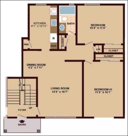 Apartment Model: 2 Bedroom2 Bedroom, 1 Bath, 1000 sq ftAvailable November 15, 20252 Bedroom - Floorplan 1 Apartment Unit: 45-1129 DApartment Model: 2 Bedroom2 Bedroom, 1 Bath, 1000 sq ftAvailable November 15, 2025