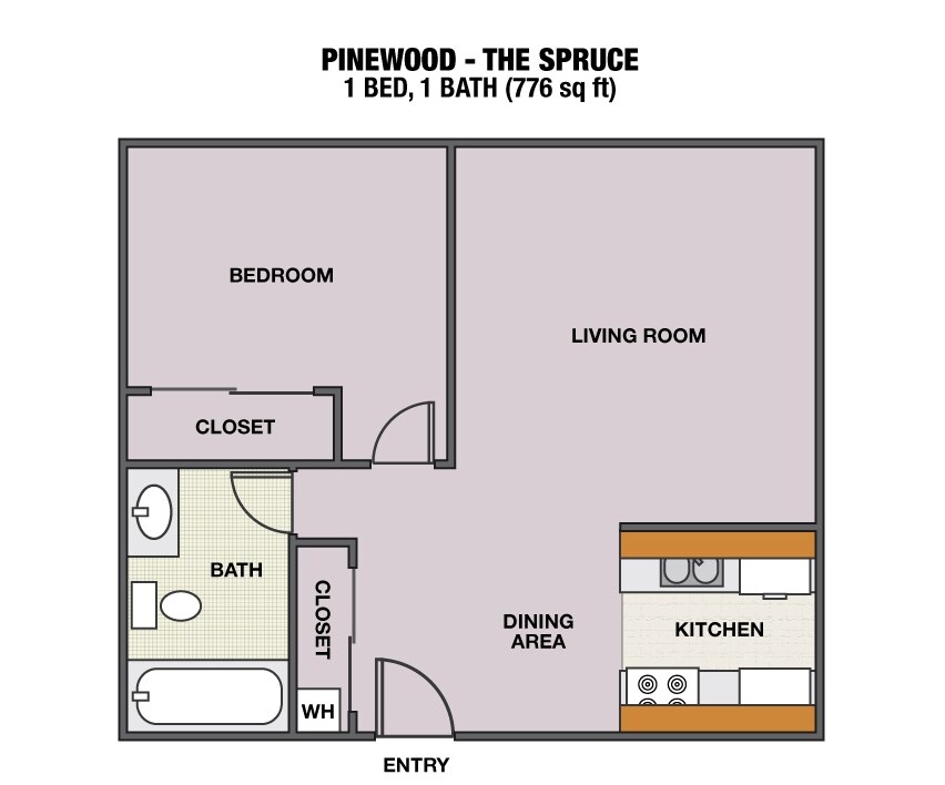 Apartment Model: The Spruce (Wait List Open)1 Bedroom, 1 Bath, 776 sq ftUnavailableFloorplansPhotos![]()