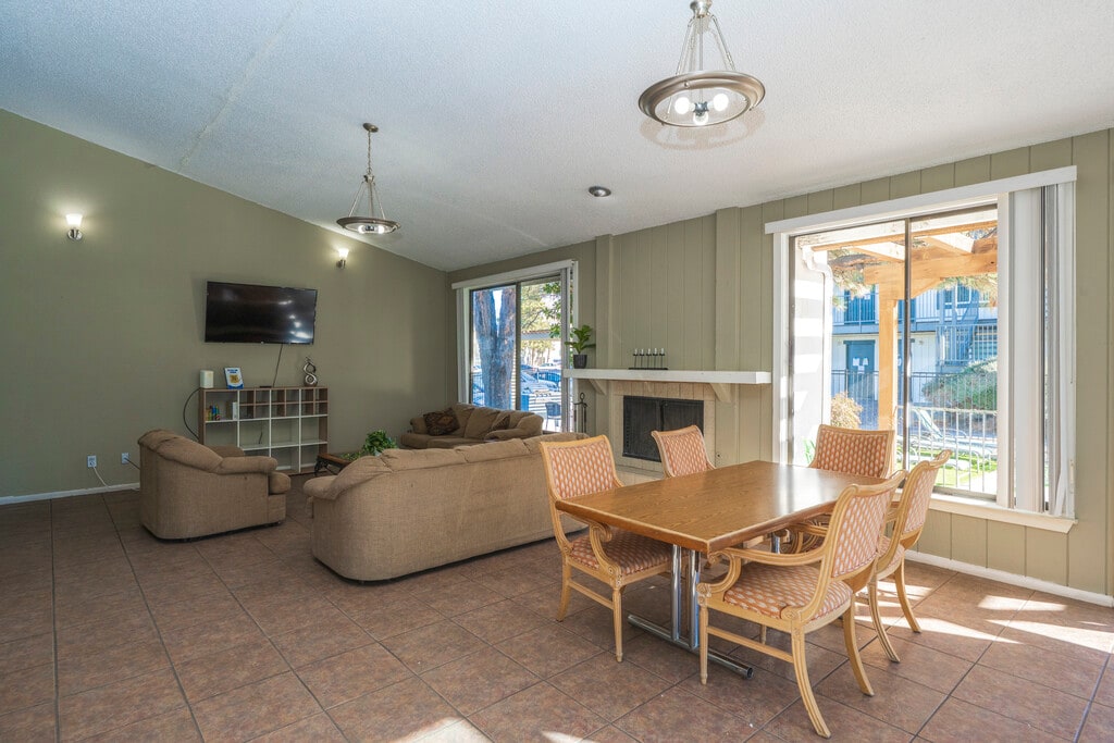 - Fireplaces in select units