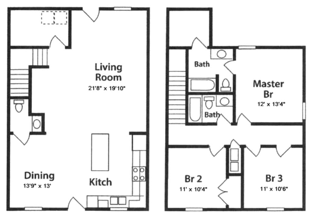Show Unavailable FloorplansThree Bedroom Townhouse