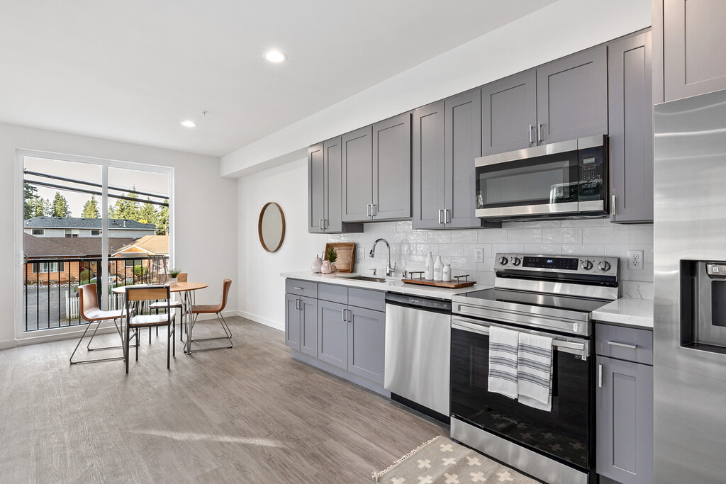 Welcome to The Pinnacle, a contemporary apartment community in Shoreline, WA, offering brand-new 2-bedroom/den, 1-bathroom units designed for modern living. Each open-concept floor plan features stainless steel appliances, quartz countertops in the kitchen and bathroom, luxury vinyl hardwood floors, and a Romeo-and-Juliet balcony. Residents enjoy in-unit amenities such as air conditioning, a washer and dryer, and a dishwasher. The community is smoke-free and pet-friendly, allowing up to two small pets with a $300 non-refundable fee and a $200 refundable deposit. Parking is limited and available for $75 per spot per unit; please inquire with the office to confirm if parking is available with your unit. Water, sewer, and garbage services are provided at a flat rate of $150 per month per unit, while residents are paying for electricity per usage. Located at 1719 N 185th St, The Pinnacle is conveniently situated near shopping centers such as Gateway Plaza Shopping Center within a 7-minute walk. The community is also close to parks including Shoreline Park and Ronald Bog, offering ample recreational opportunities. For more information or to schedule a viewing, please contact us. Experience modern living at The Pinnacle in Shoreline, WA. Utilities and others: Water, sewer and garbage: $150/month. Renters pay own electricity and renter insurance. No smoking allowed. First & last month rent and security deposit due upon signing. Pets: Up to two small pets are permitted with $300 non-refundable fee per pet. $200 pet refundable deposit per pet. No pet rent per month. Parking: Parking lot renting is $75/month (1 lot per unit but limited).