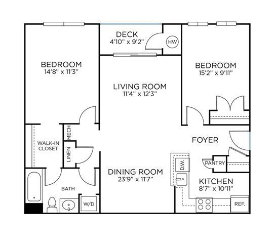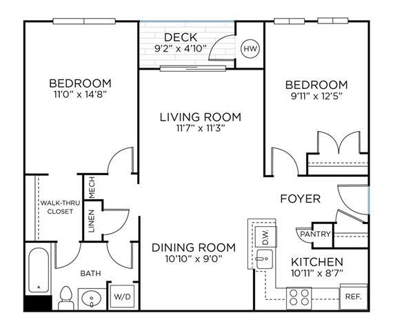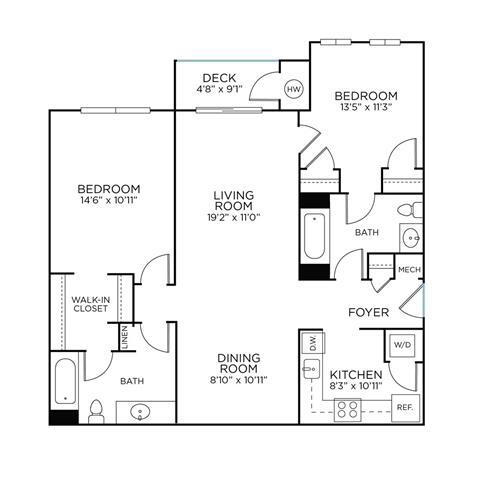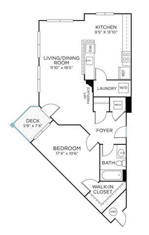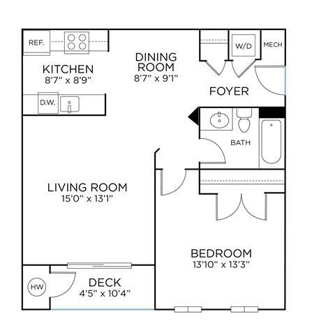 Apartment Model: Norbeck - RFrom $1,8651 Bedroom, 1 Bath, 700 sq ftAvailable NowFloor plans are artist's rendering. All dimensions are approximate. Actual product and specifications may vary in dimension or detail. Not all features are available in every rental home. Prices and availability are subject to change. Base rent is based on monthly frequency. Additional fees may apply, such as but not limited to package delivery, trash, water, amenities, etc. Deposits vary. Please see a representative for details.