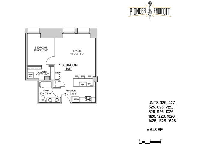 Pioneer Endicott offers Studio to 2 Bedroom apartments starting from $1,103 and having 418–1,322 sq ft. Here is the current pricing and availability: