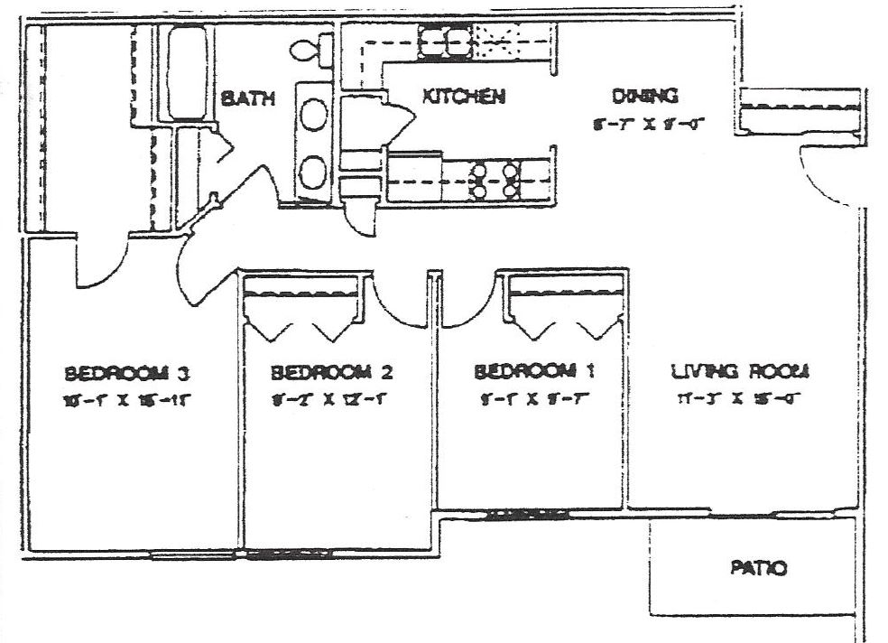 Apartment Model: 3 Bedroom, Third Floor$8953 Bedroom, 1 Bath, 1100 sq ftUnavailable![]()