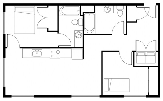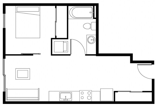 Studio L - Floorplan Apartment Unit: 410Apartment Model: Studio L$2,000Studio, 1 Bath, 555 sq ftAvailable NowStudio B