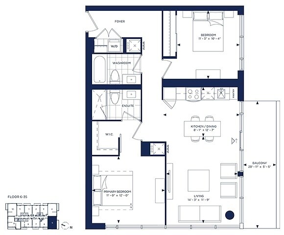 The Westward - Floorplan 1 Apartment Unit: 3109Apartment Model: The Westward2 Bedroom, 2 Bath, 978 sq ftAvailable NowThe Apex II - Penthouse