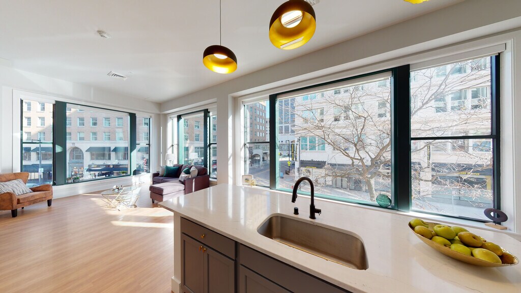 Plankinton Clover is apartment development offering studio, one, and two bedroom apartments in the heart of Downtown Milwaukee . Our apartments feature wood flooring, stainless steel appliances, quartz counter tops, in-unit washer and dryers, high ceilings, over-sized windows, skylights, and unique private verandas. Community amenities include a fitness center with on-demand workout classes and full locker rooms, a club room, doggy wellness area, bike storage, skywalk connection, ample parking, & future access to the new 3rd St. Market Hall.