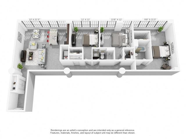 Plant 64 Apartment Homes offers 1 to 3 Bedroom apartments starting from $1,380 and having 675–1,729 sq ft. Here is the current pricing and availability: