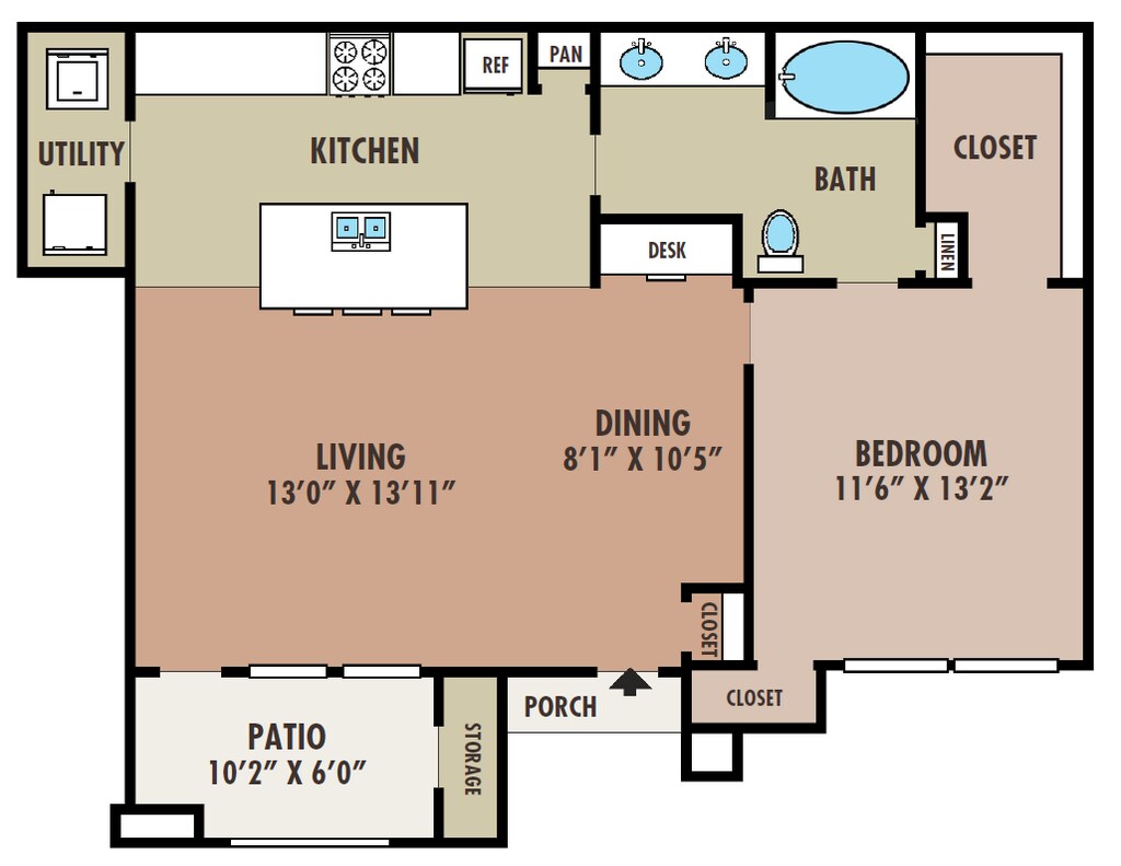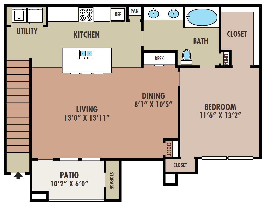 1 Bed, 1 Bath, 882 sq ftLargest 1 BedroomThis is the largest 1 Bedroom at this PropertyModel Gallery
