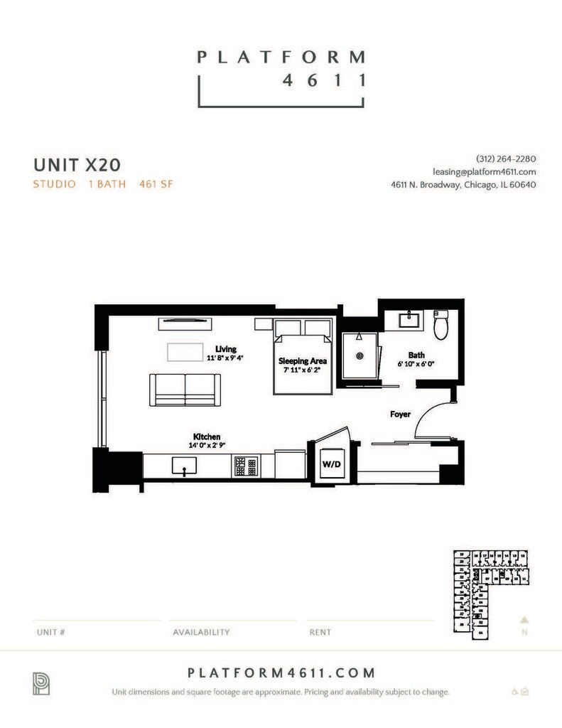 Platform 4611 Uptown Chicago offers Studio to 1 Bedroom apartments starting from $1,750 and having 442–615 sq ft. Here is the current pricing and availability: