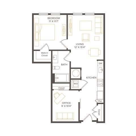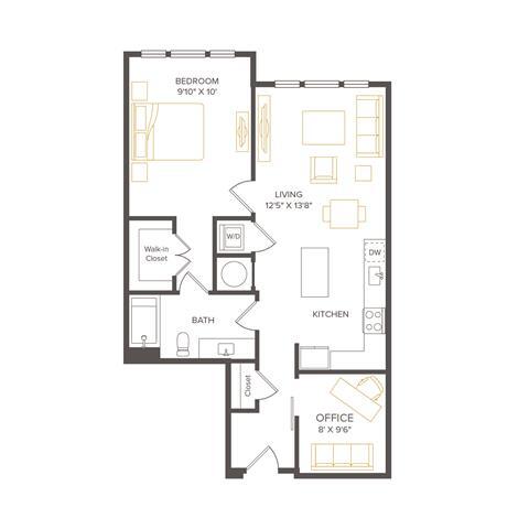 Studio, 1 Bath, 486 sq ftAvailable NowModel Gallery