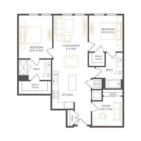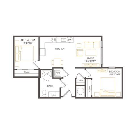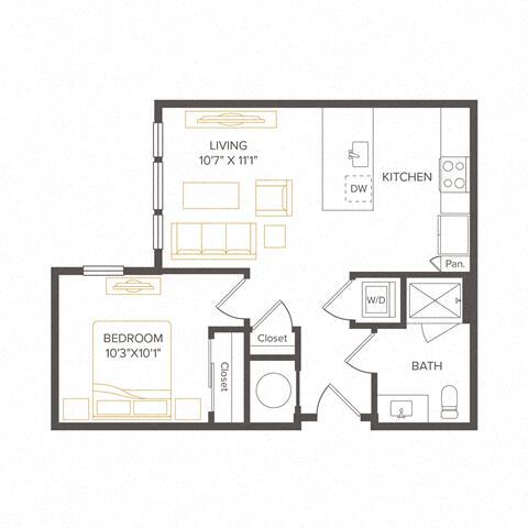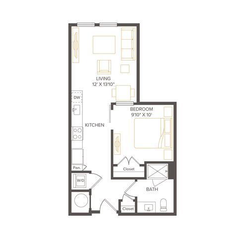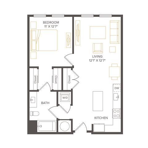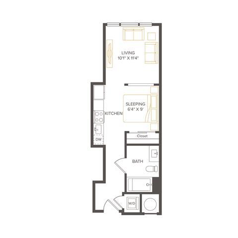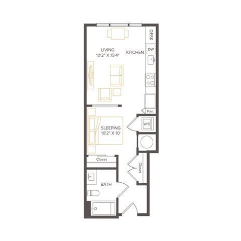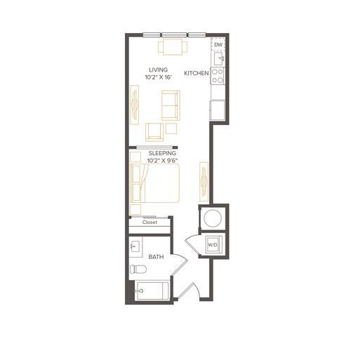 Studio, 1 Bath, 446 sq ftAvailable January 7, 2026Model Gallery