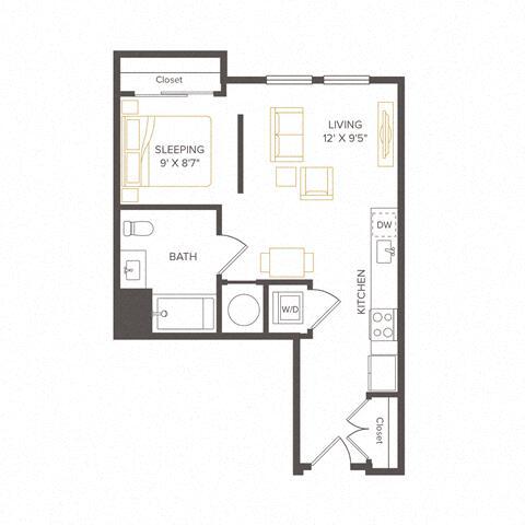 S2 - Floorplan 1 Apartment Unit: 4629Apartment Model: S2$2,089Studio, 1 Bath, 438 sq ftAvailable April 5, 2026Floorplan S3