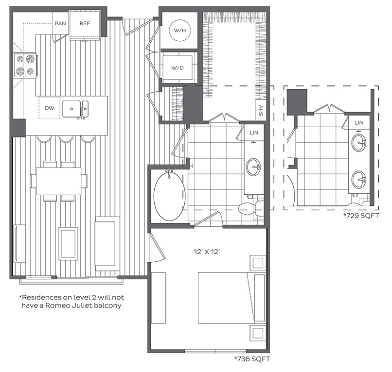 1 Bed, 1 Bath, 730 sq ftAvailable NowModel Gallery