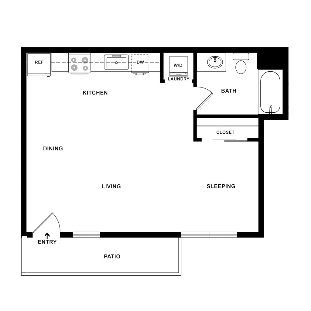 Studio - Floorplan 3 Apartment Unit: 214Apartment Model: Studio$2,025Studio, 1 Bath, 558 sq ftAvailable Now1 Bedroom
