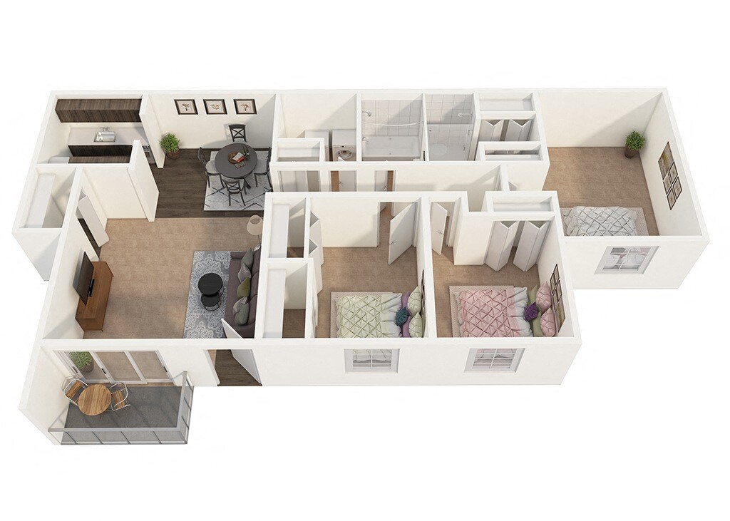3 Beds, 2 Baths, 1001 sq ftModel Gallery