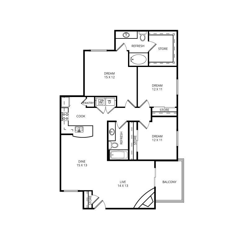 Apartment Model: Mountain LaurelFrom $7991 Bedroom, 1 Bath, 700 sq ftAvailable Now![]()