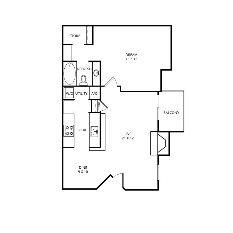 1 Bed, 1 Bath, 750 sq ftAvailable NowModel Gallery