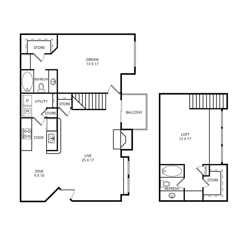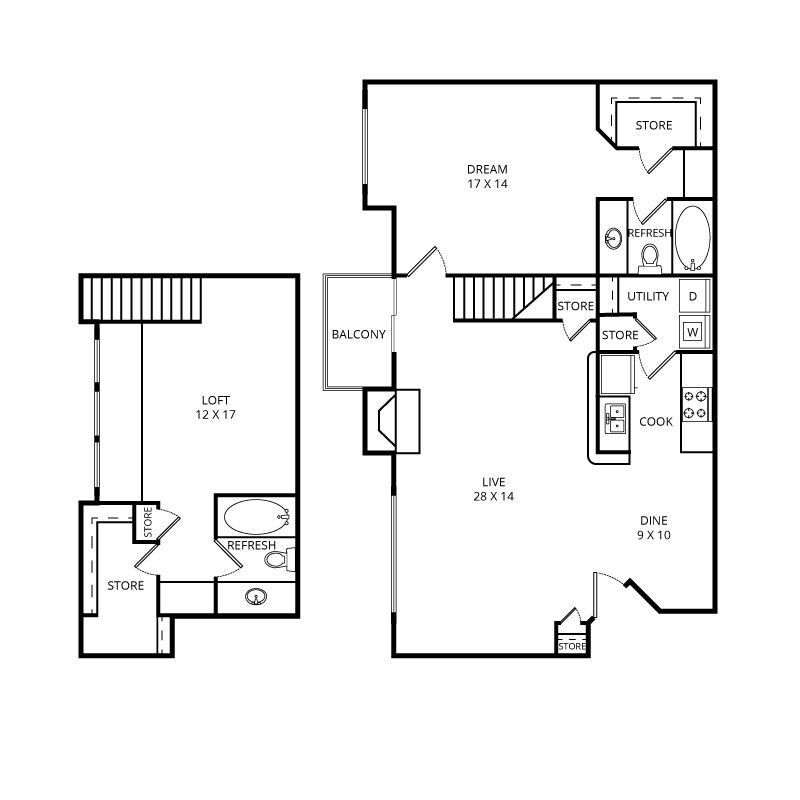 1 Bed, 2 Baths, 1300 sq ftAvailable NowModel Gallery