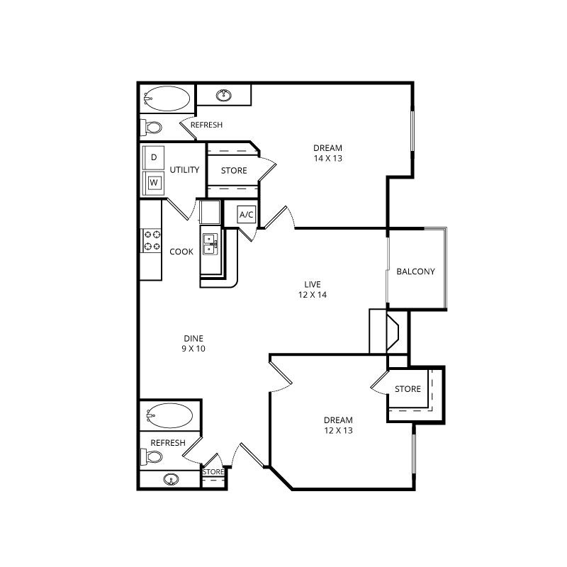 2 Beds, 2 Baths, 921 sq ftAvailable NowModel Gallery