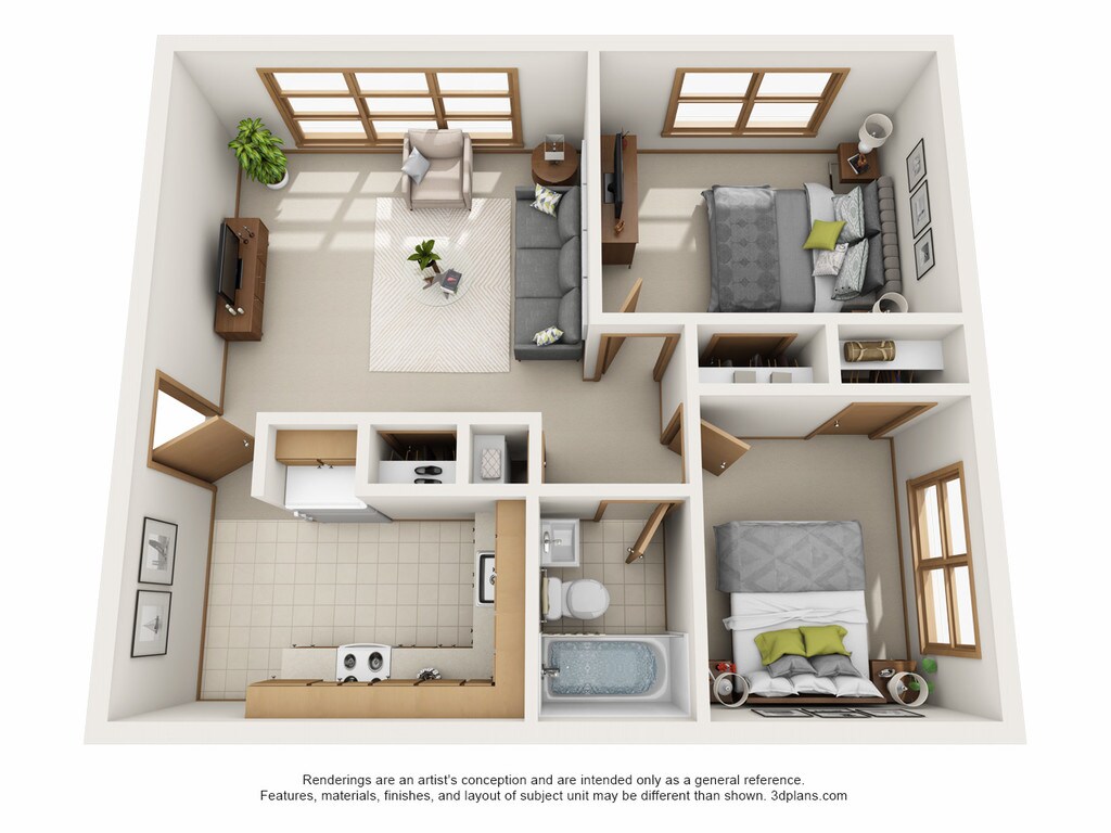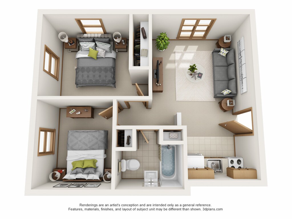2 Beds, 1 Bath, 740 sq ftAvailable Dec 1Largest 2 BedroomThis is the largest 2 Bedroom at this PropertyModel Gallery
