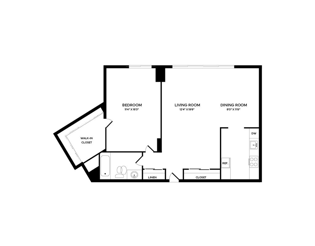 One Bedroom - 60% AMI - Floorplan 5 One Bedroom - 80% AMI