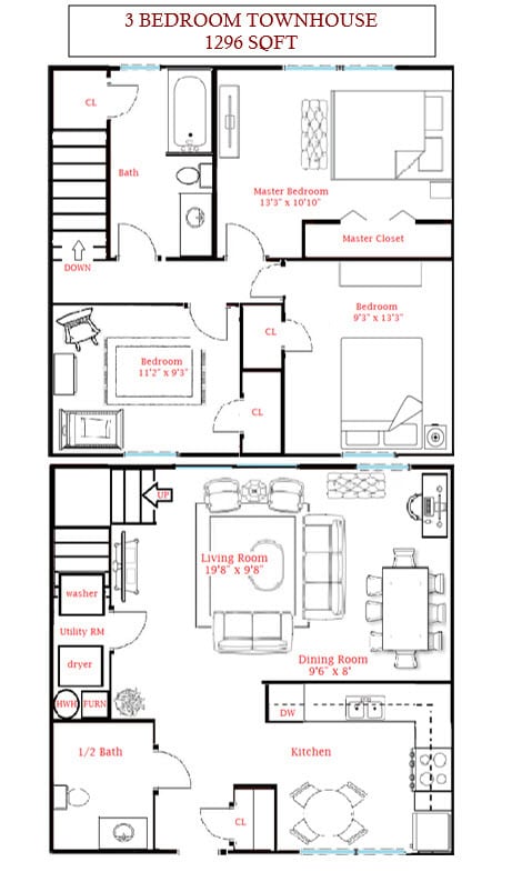 3 Beds, 1.5 Baths, 1296 sq ftAvailable NowModel Gallery